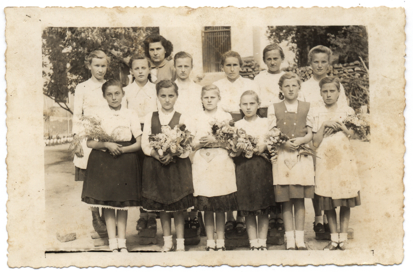 Nyilvános 1531 | 2501 | Anyák napja 1955. május | A képen: Herczegh Rózsa, Bekő Zsuzsanna, a hátul lévő tanár neve nem ismert, Könczöl Margit, Anda Eszter, Márfi Margit, Halász Mária, Deli Erzsébet, Csináth Erzsébet, Csuha Piroska, Morton Anna, Kocsis Ilona, Molnár Margit. |